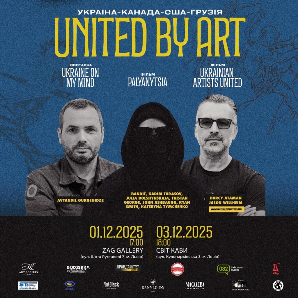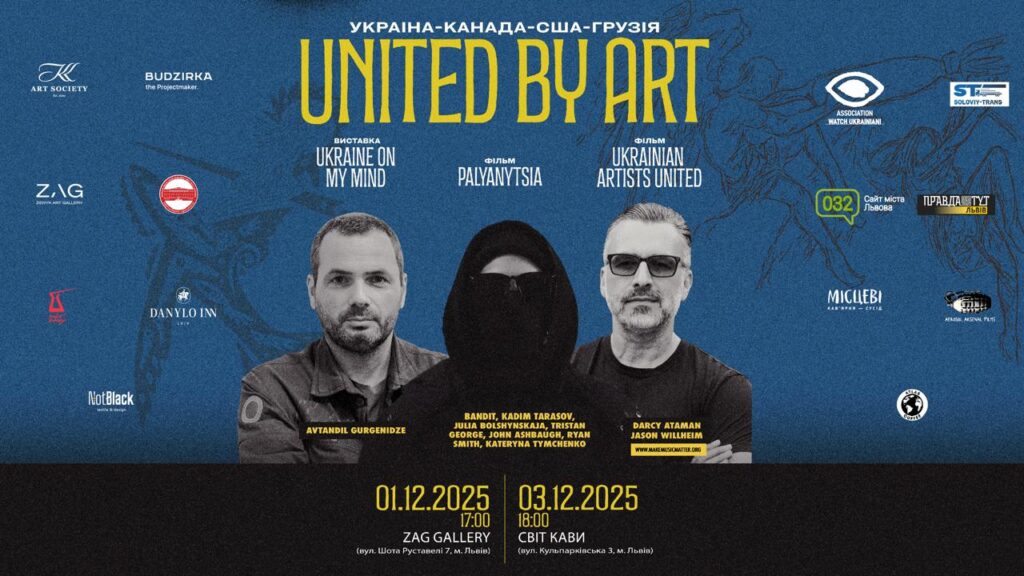 1 та 3 грудня у Львові відбудеться презентація міжнародного культурного проєкту “United by Art” — ініціатива, що об’єднує музику, кіно та мистецтво як універсальну мову солідарності. Створюючи простір для діалогу між митцями та глядачами, ця подія робить культуру інструментом підтримки, співпраці та натхнення у часи викликів; водночас, її головна ідея полягає в тому, що завдяки мистецьким проєктам, створеним іноземними митцями в Україні, резонансно лунає голос за кордоном – голос України, транслюючи через культуру актуальні події та виклики сьогодення. У рамках проєкту будуть представлені роботи митців із Канади, США та Грузії. Вхід на подію безкоштовний за умови реєстрації.