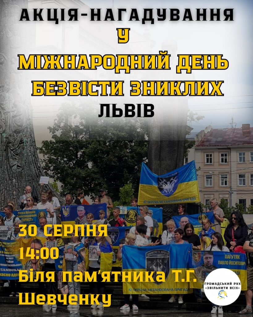 30 серпня — Міжнародний день памʼяті зниклих безвісти.