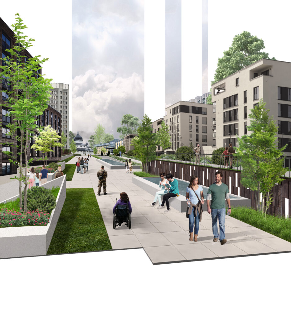 Варто наголосити, що цей простір за задумом є інклюзивним, тобто матиме сучасну транспортну розв’язку, а також інфраструктуру для зручного пересування та кріслами колісними чи з дитячими візками.