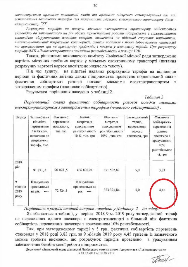 «Нагадаю, що в момент, коли планувалось підняття вартості проїзду у електротранспорті в 2019 році до 6 грн. (7 у водія) собівартість перевезення за даними звіту Держаудитслужби становила 4 грн. 45 коп з 10% рентабельністю», – зазначає Ostap Osty.