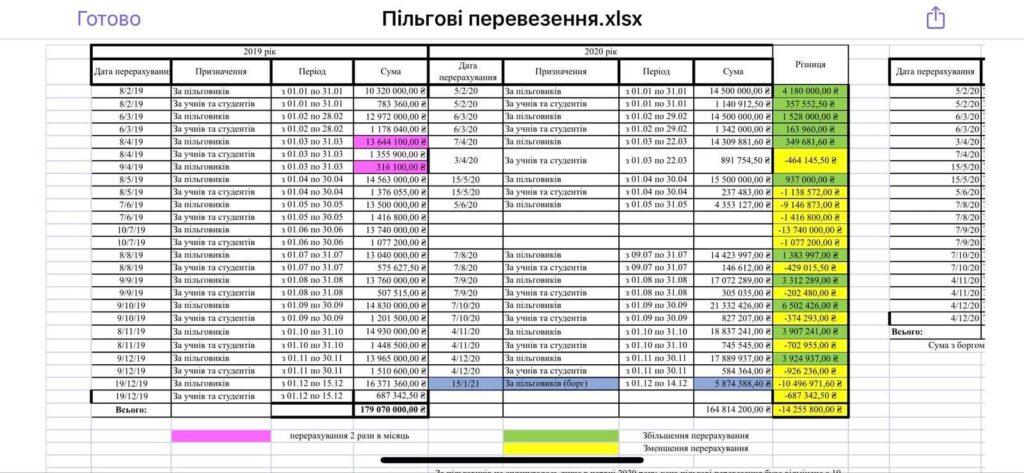 «На сьогоднішній день Львівелектротранс подав розрахунки потреби коштів на 2021 рік. Цей розрахунок проведено при вартості проїзду 6 гривень. Окрім цього при піднятті вартості вдвічі автоматично збільшується вдвічі компенсація з міського бюджету за перевезення пільгових категорій. За 2020 рік Львівелектротранс отримав компенсацію за перевезення пільгових перевезень в розмірі 164 814 200 гривень. Тобто при збільшенні вартості проїзду вдвічі така компенсація зросте на суму не меншу, як 164 мільйони гривень», – пише Ostap Osty.