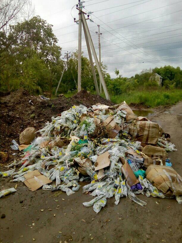 За словами чоловіка, сміття викинули у Залізничному районі Львова між складом супермаркету “АТБ” та “Brama”.