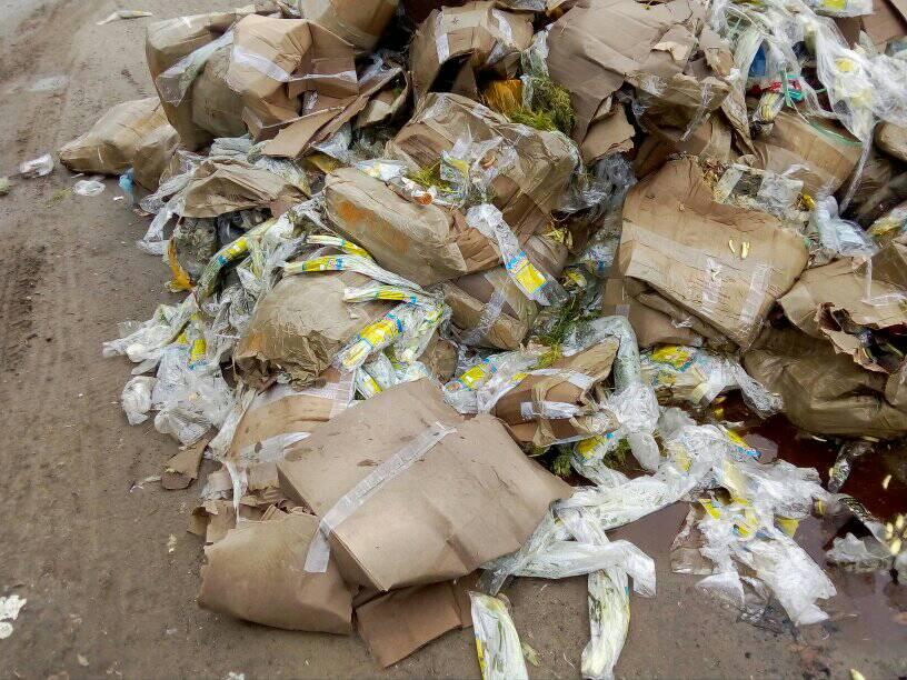 У Львові невідомі особи просто неба викинули зіпсовану продукцію з супермаркету.