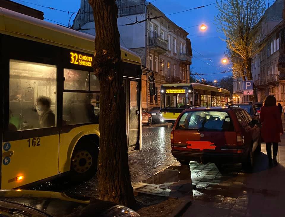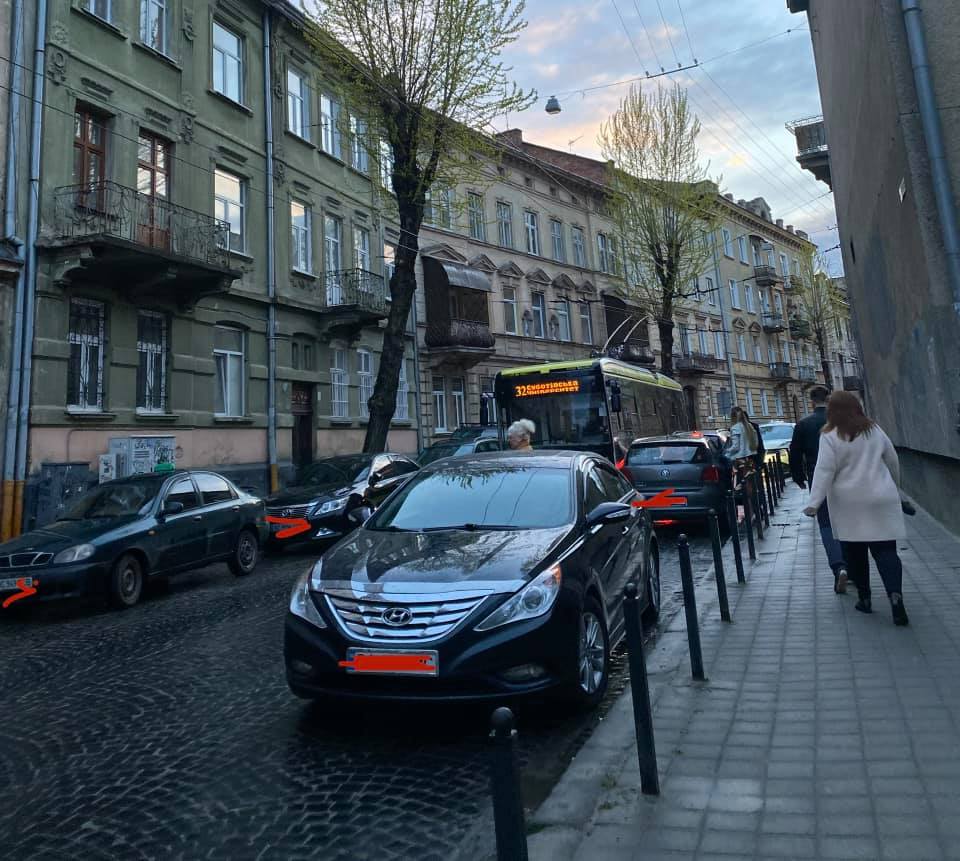 - У Львові припарковані автомобілі блокують рух тролейбусів. Фото: Ірина Войтович