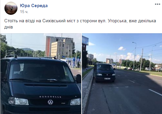 «Стоїть на в’їзді на Сихівський міст з сторони вул. Угорська, вже декілька днів», – повідомив на «Гарячу лінію міста Львова» Юра Середа.