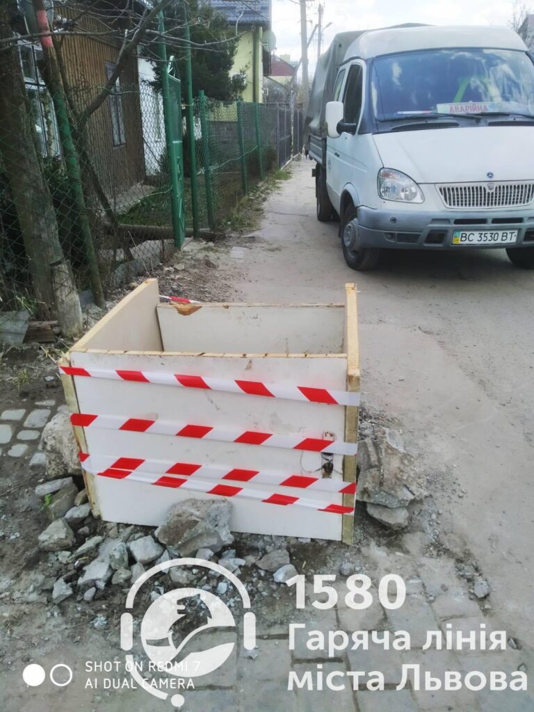 Львів’янка закликала полагодити люк і звернутись з відповідним зверненням до керівництва організації, що обслуговує цю ділянку з вивозу сміття.