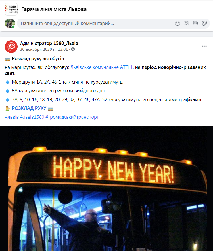 Як повідомлялося, у Львові оприлюднили графіки курсування маршруток і трамваїв на Новий рік та Різдво.