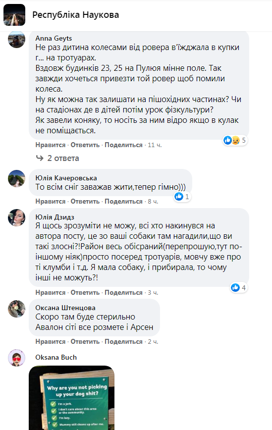 Як повідомлялося, у Львові городяни оголосили війну «собачникам», які не прибирають за своїми тваринами. У соцмережах розгорівся «скандал» між городянами, які обурюються поведінкою власників собак, що не прибирають за своїми тваринами та власниками тварин, яких обурюють наміри окремих громадян підсипати на вулицях тваринам проносні засоби.