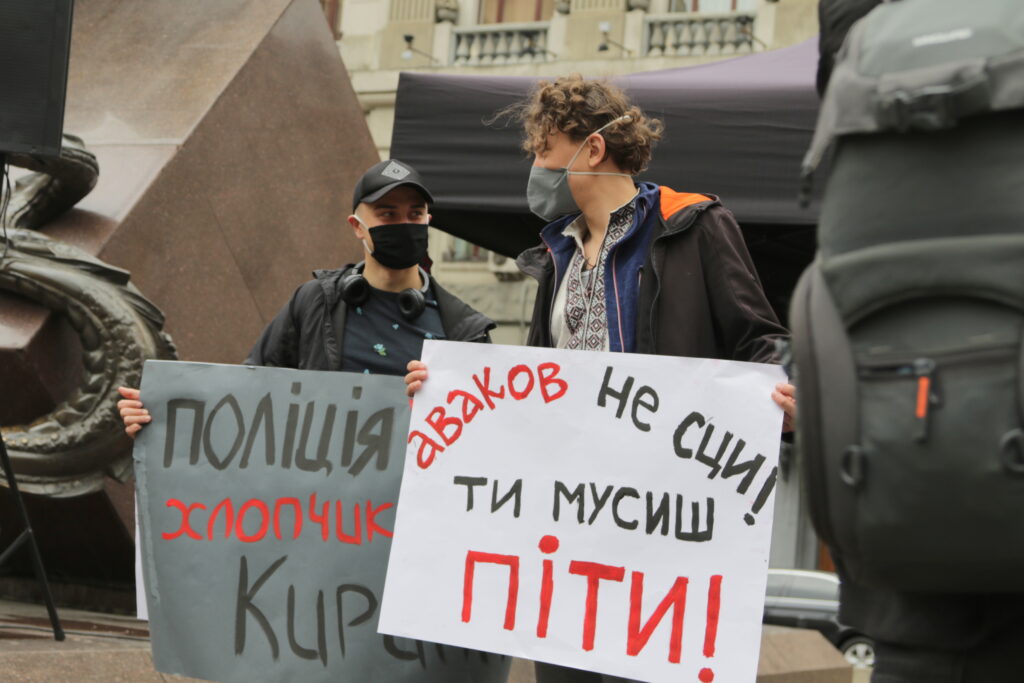 Учасники акції принесли десятки плакатів з красномовними написами й переконані, що “Такий чорт, як Аваков, має негайно піти з посади, а не бути однією з найвпливовіших персон у країні”.