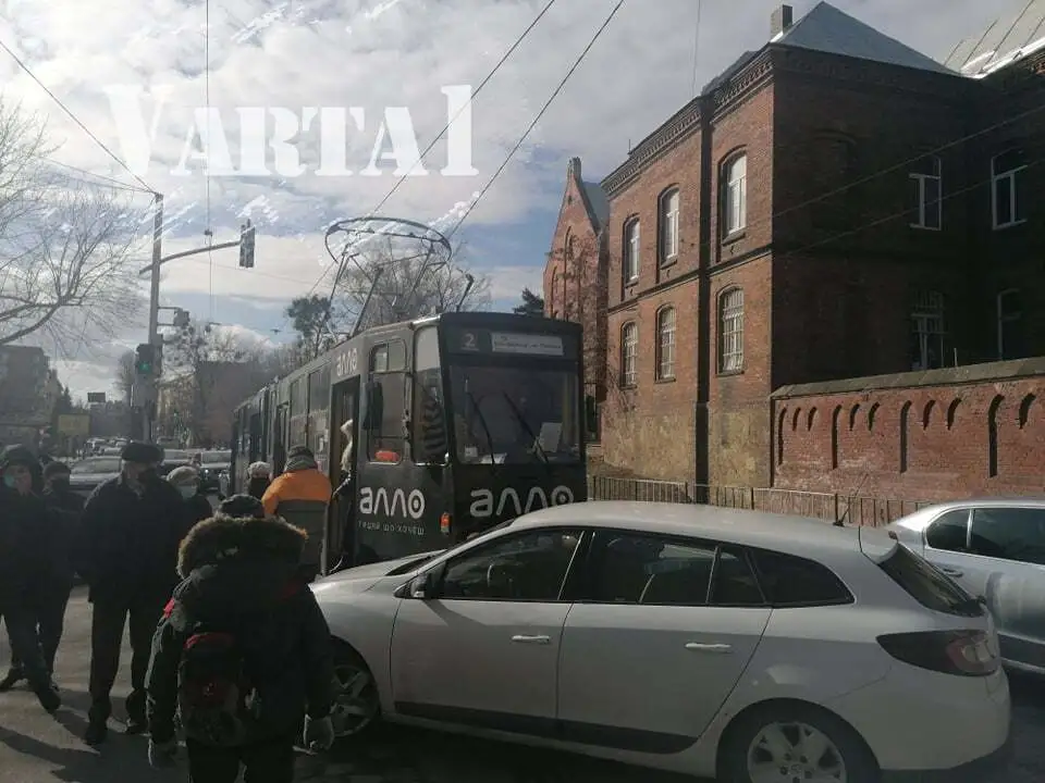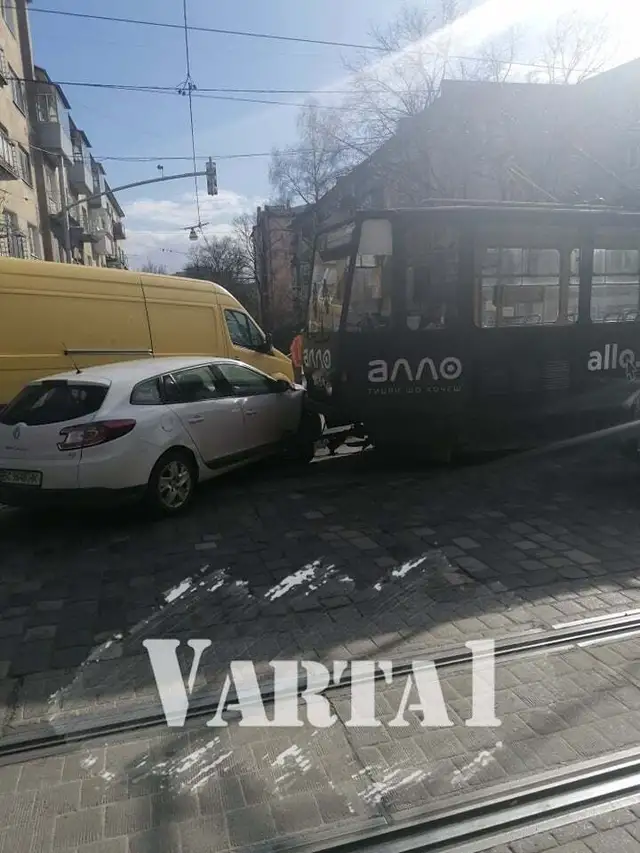 Рено зіштовхнулося з трамваєм, який віз по маршруту пасажирів.