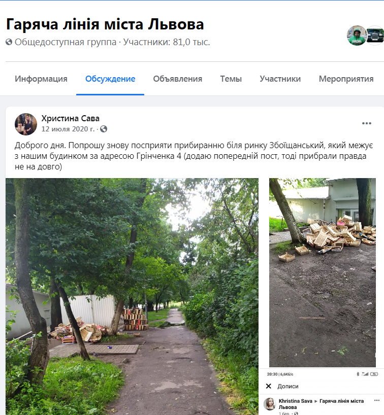 Позначки: відходи, Гаряча лінія міста Львова, Збоїща, ринок