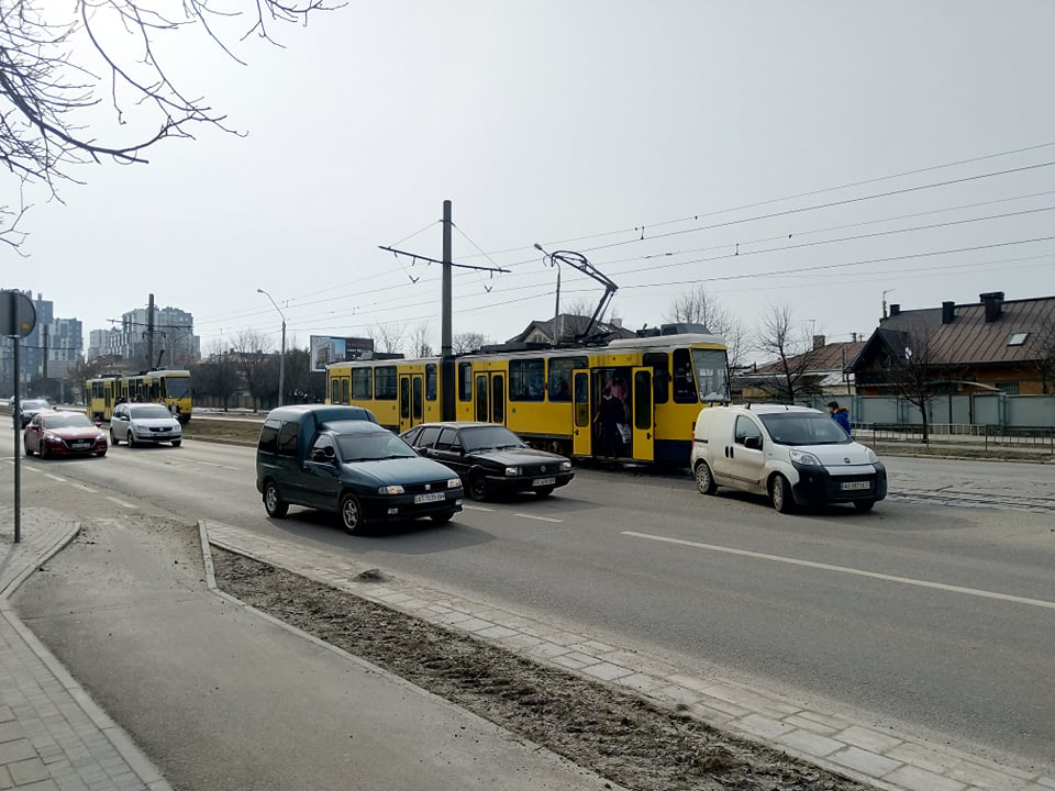 Відтак трамвай зіткнувся з легковиком. Внаслідок ДТП ніхто не постраждав, пасажири трамваю покинули вагон.