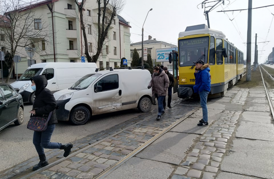 - У Львові трамвай протаранив авто. Фото: Leopolis.news