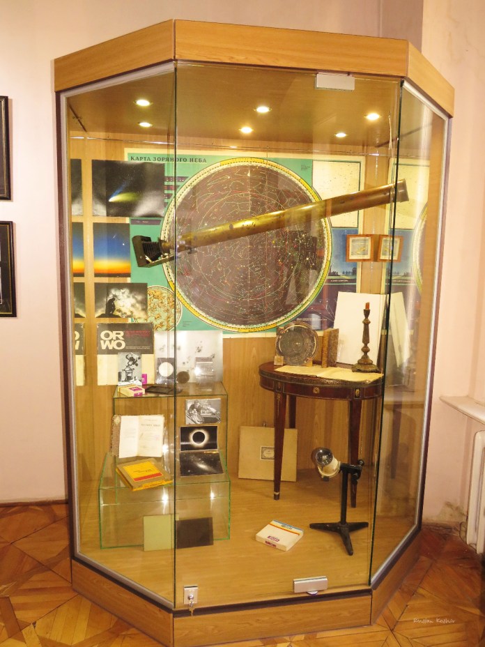Ще одна вітрина присвячена астрономічній фотографії. Як відомо, у Львові існувала найстарша обсерваторія України. Експозиція демонструє фотографічну