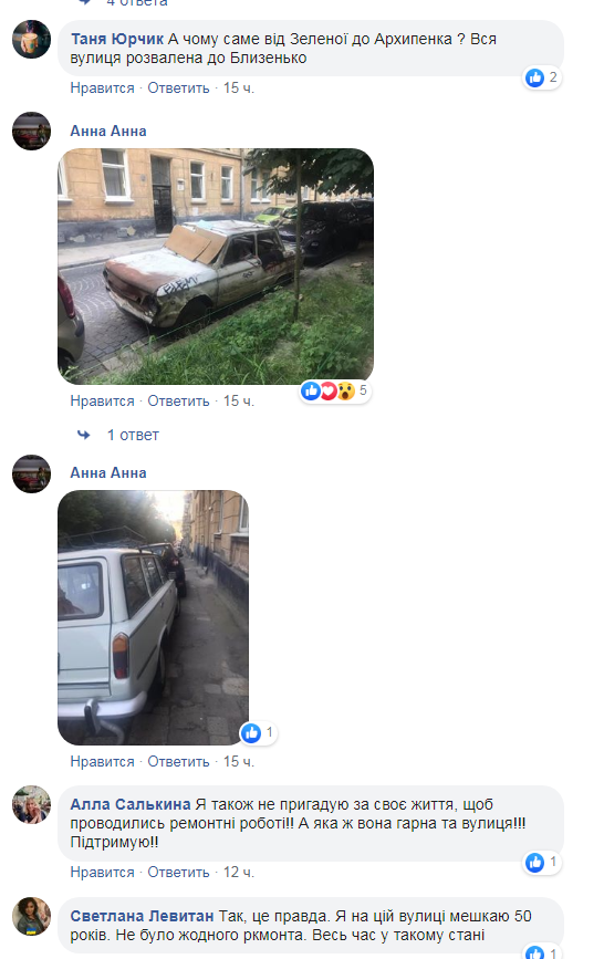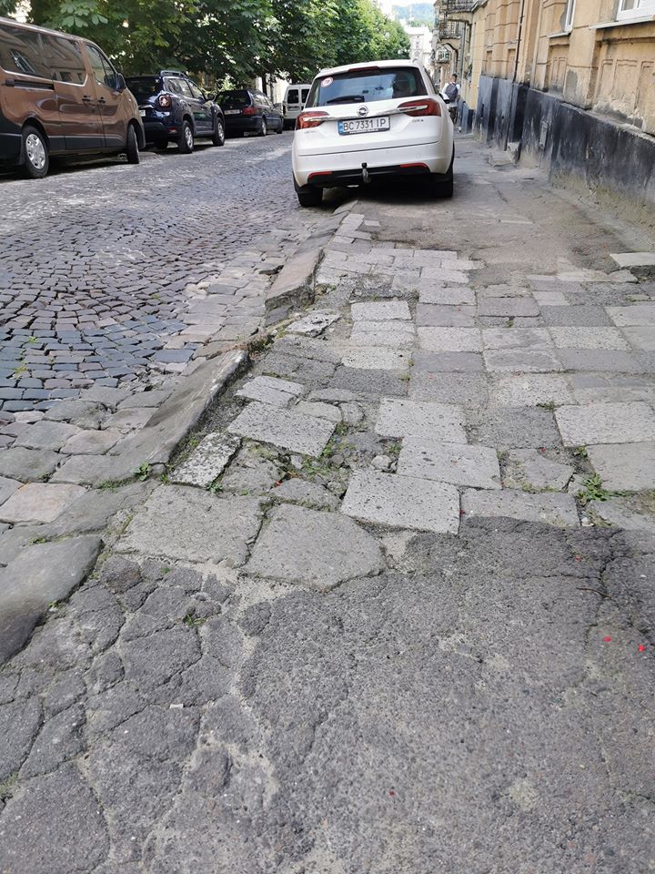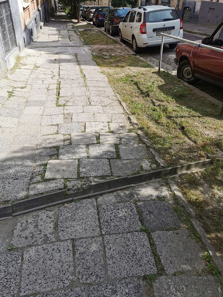 Автор звернення наголошує, що “моя родина мешкає на цій вулиці з 1949 року, на пам’ яті моїх родичів не було жодного капітального ремонту тротуарів на відрізку від початку вулиці до повороту на вул. Архіпенка. Автомобілі паркуються з обох сторін вулиці, як на частині для проходу пішоходів, так і на газоні. А зважаючи на дуже вузький тротуар, не залишається місця для проходу пішоходів. Деякі мешканці перших поверхів самостійно встановлюють “запобіжники” від парковки під своїми вікнами з підручних матеріалів: цемент, бетон, форму яким придають відрами“.