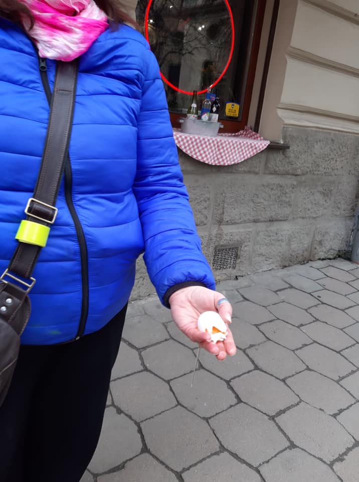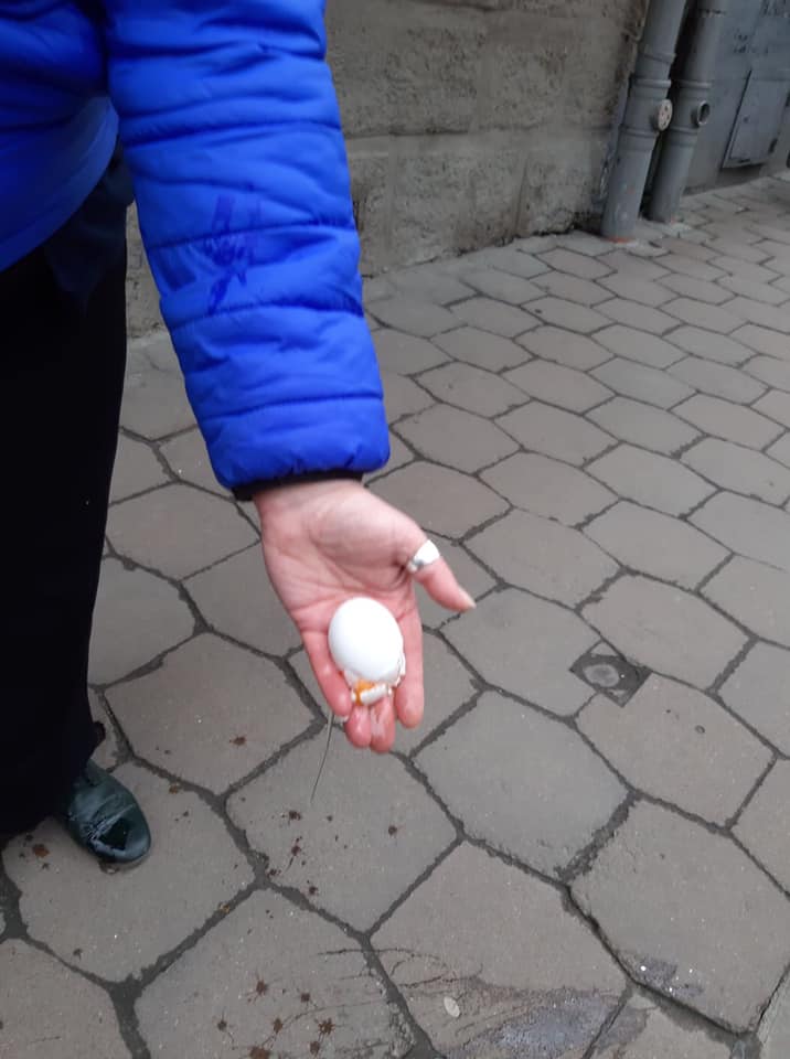 “Щойно на вулиці Федорова мене і двох наших активісток у спину з криками «На х.й геть із України» закидали сирими яйцями. Дані свідків маємо. Заяву до поліції складаємо”, – йдеться у дописі.