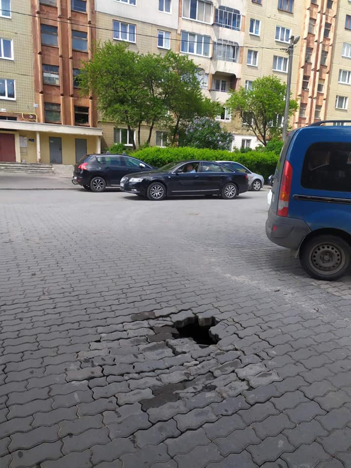 Як повідомляється, на вулиці Шевченка, 348, біля 3-го під’їзду утворилось провалля бруківки. Зі слів дописувача, Львівську міську раду про провалля інформують вже втретє.
