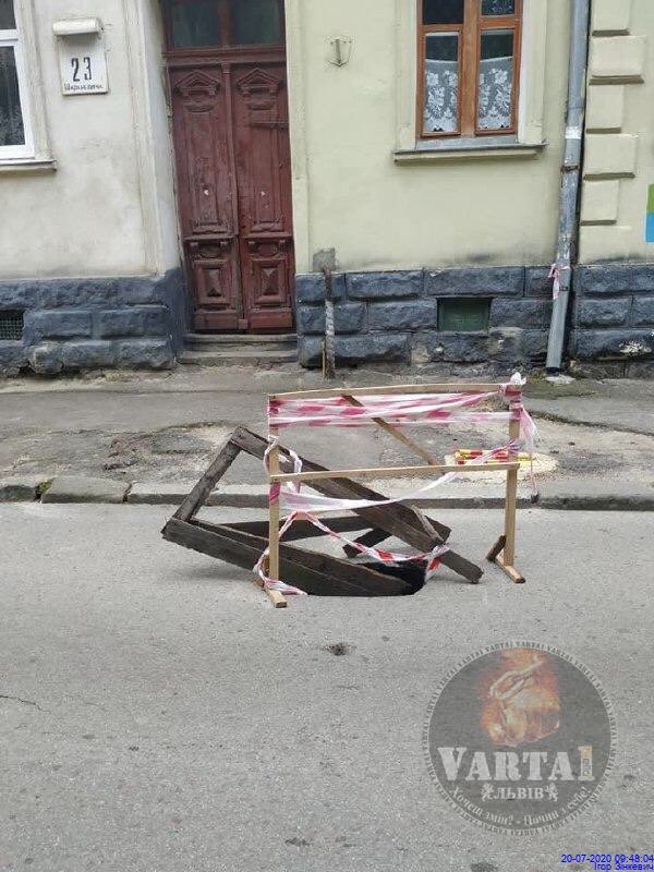 “На вулиці Шараневича, 23, утворилася глибока яма на дорозі”, – йдеться в дописі.