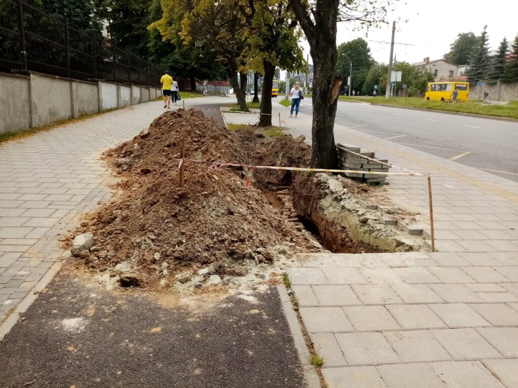 У Львові під час ремонтних робіт велодоріжку на вулиці Княгині Ольги, 5, закидали піском.