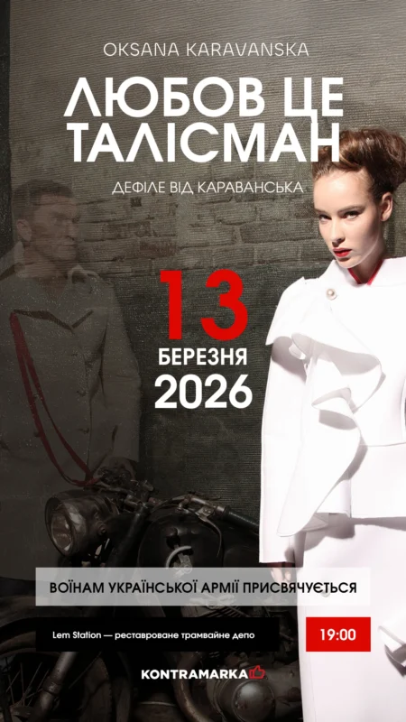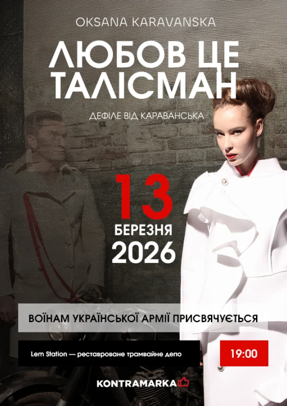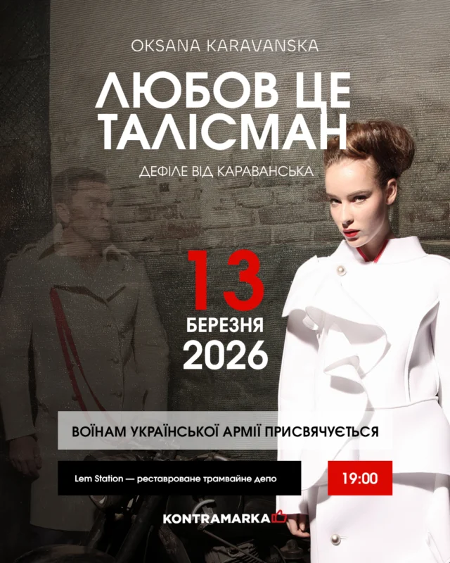 У п’ятницю, 13 березня, відома українська дизайнерка Оксана Караванська представить у Львові, на щойно відреставрованій локації LEM Station (вул. Д. Вітовського, 57), перформенс-дефіле «Любов — це талісман» (Воїнам української армії присвячується)». Початок – о 19:00.