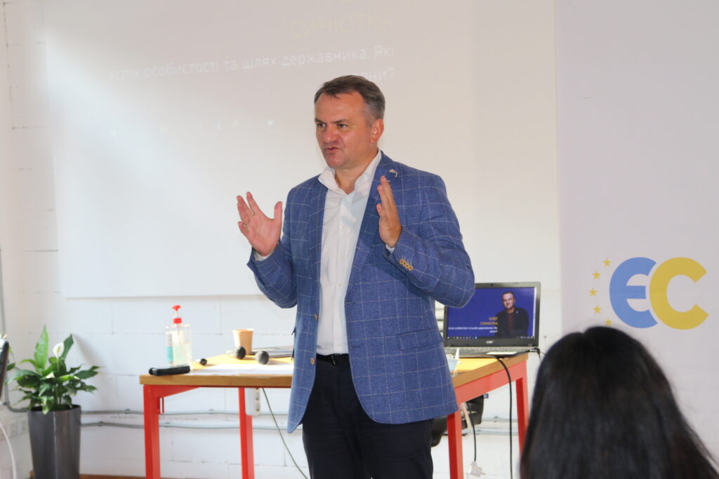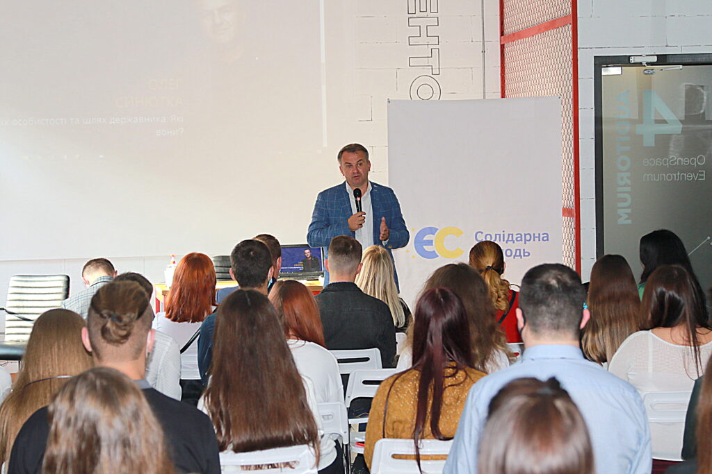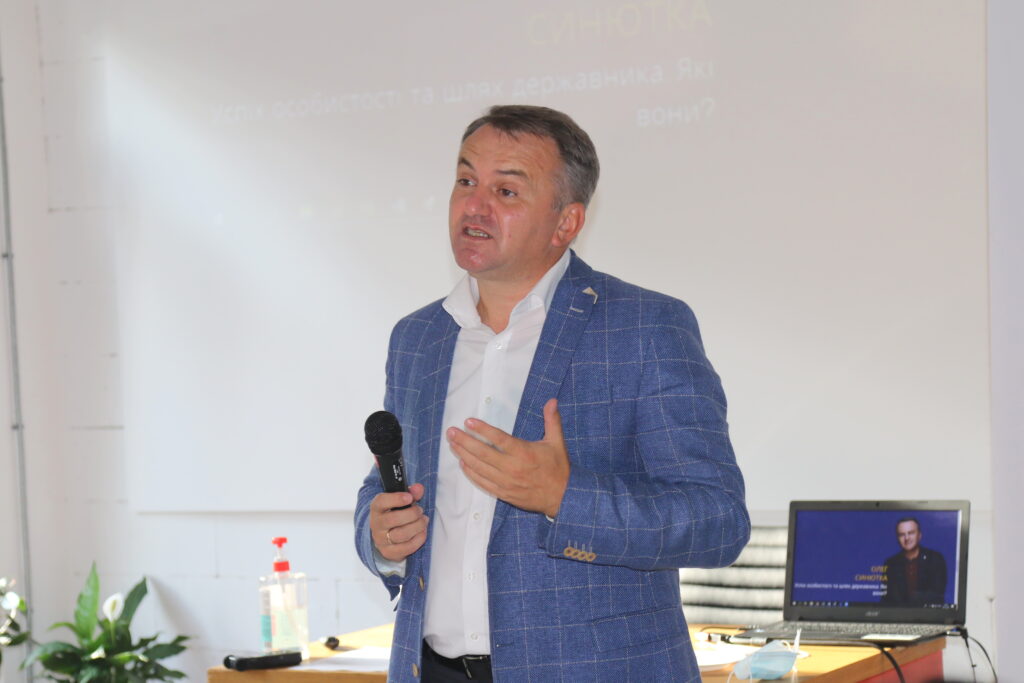 “Моє головне завдання як політика та українського патріота і батька своїх дітей полягає в тому, щоб ваше покоління шукало щастя в себе вдома. Щоб ви, пізнавши і відвідавши інші країни, поверталися до себе на Батьківщину. І тут знаходили якісну освіту, гарну роботу, достойну зарплату. Щоб тут ви створювали свої сім’ї, народжували дітей. І, щоб ви могли з гордістю сказати: я живу в Україні, бо вона прекрасна, я її люблю і мені тут комфортно жити”, – сказав Олег Синютка розповідаючи про свій шлях державника.