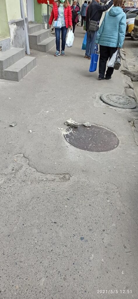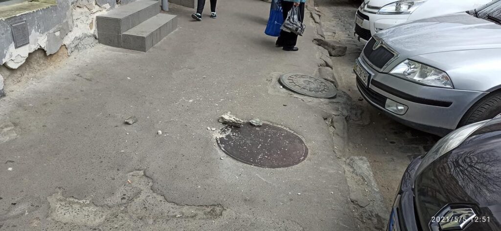 “Біля входу на привокзальний ринок з площі Липневої, відвалився “кусень” балкону який ледь не забив чоловіка (впав поруч) – прохання відреагувати відповідних комунальних служб, люди продовжують ходити по тротуарі, над яким знаходиться небезпечний балкон!”, – йдеться у повідомленні.