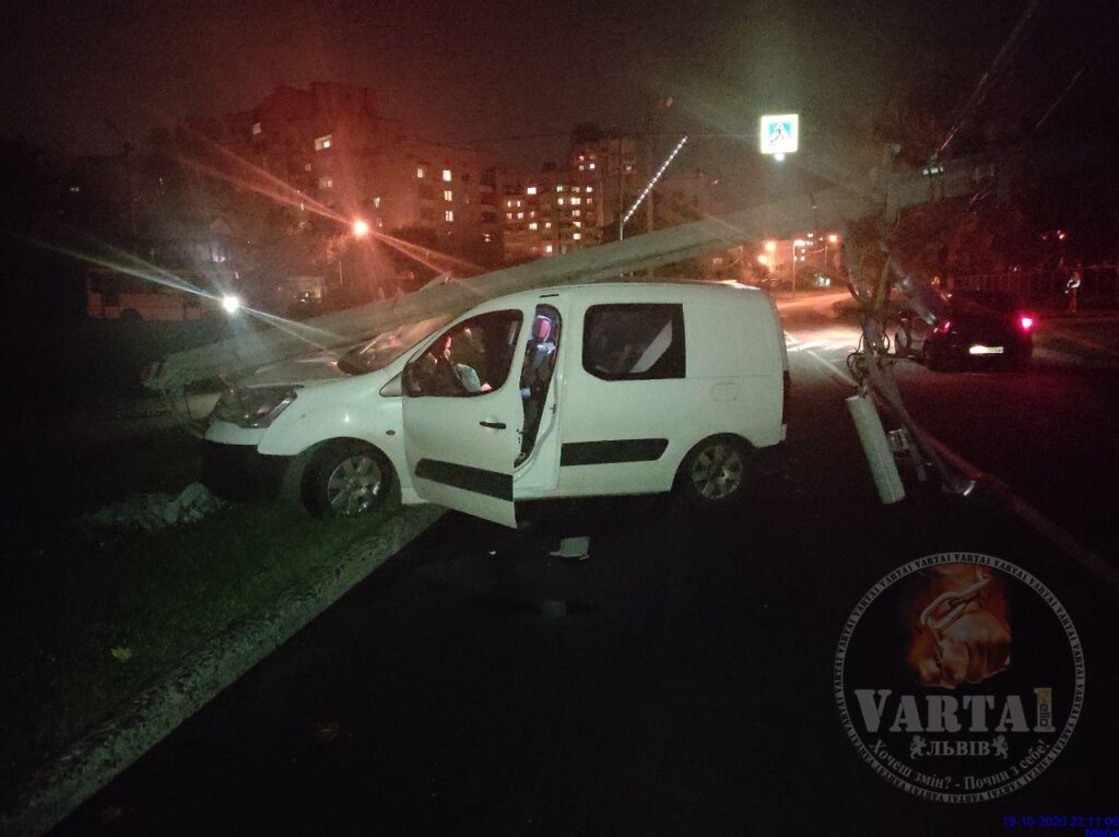 У Львові водій не розминувся із стовпом.