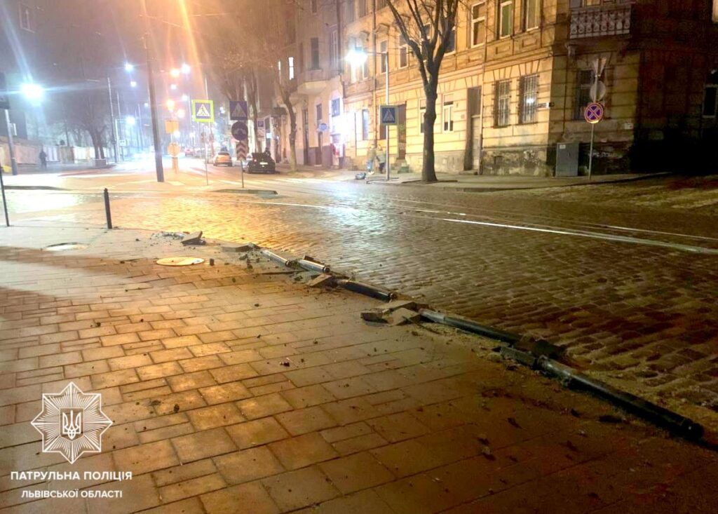 Водій зніс 6 металевих стовпчиків і, як виявилося, був напідпитку