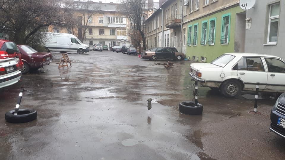 - У Львові на Ярослава Мудрого встановили обмеження на заїзд у двір. Фото Гаряча лінія міста Львова