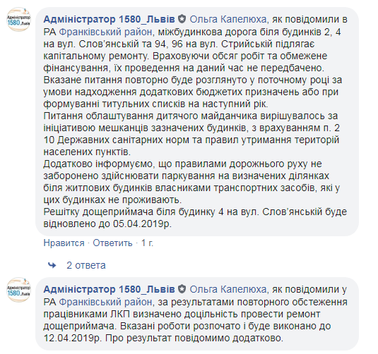 - Скриншот ФБ/Гаряча лінія міста Львова/2019р.