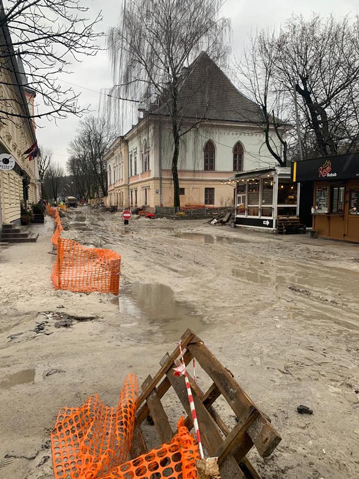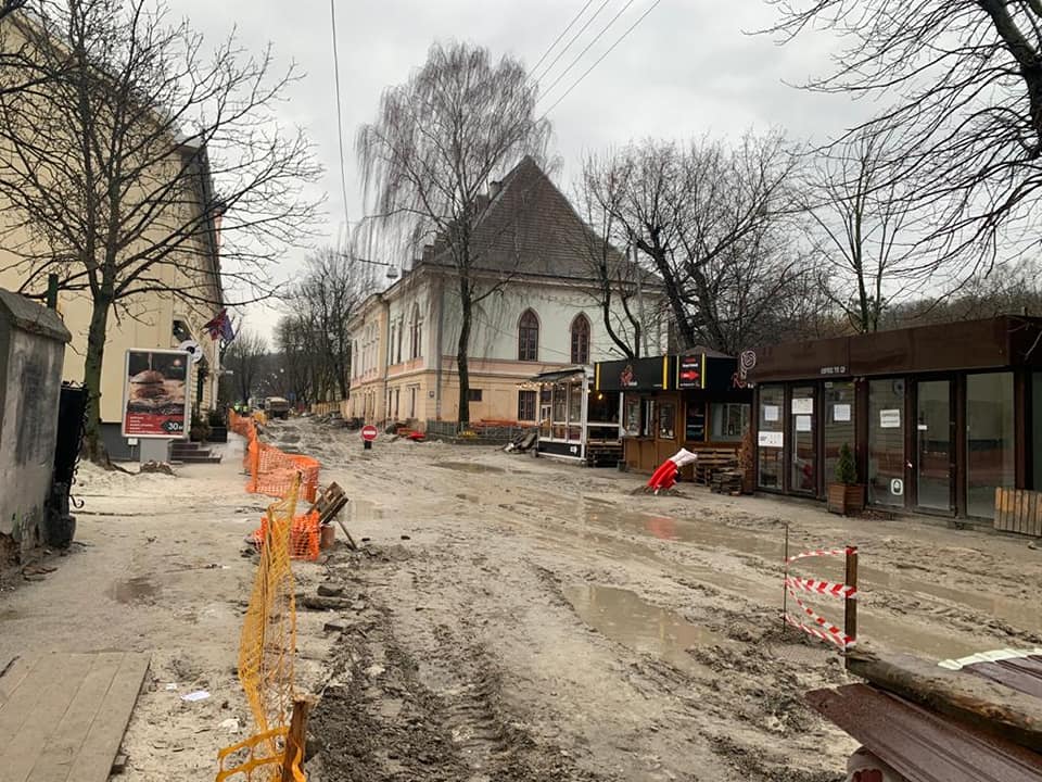 У Львові вулиця Пекарська потонула у болоті через ремонтні роботи.