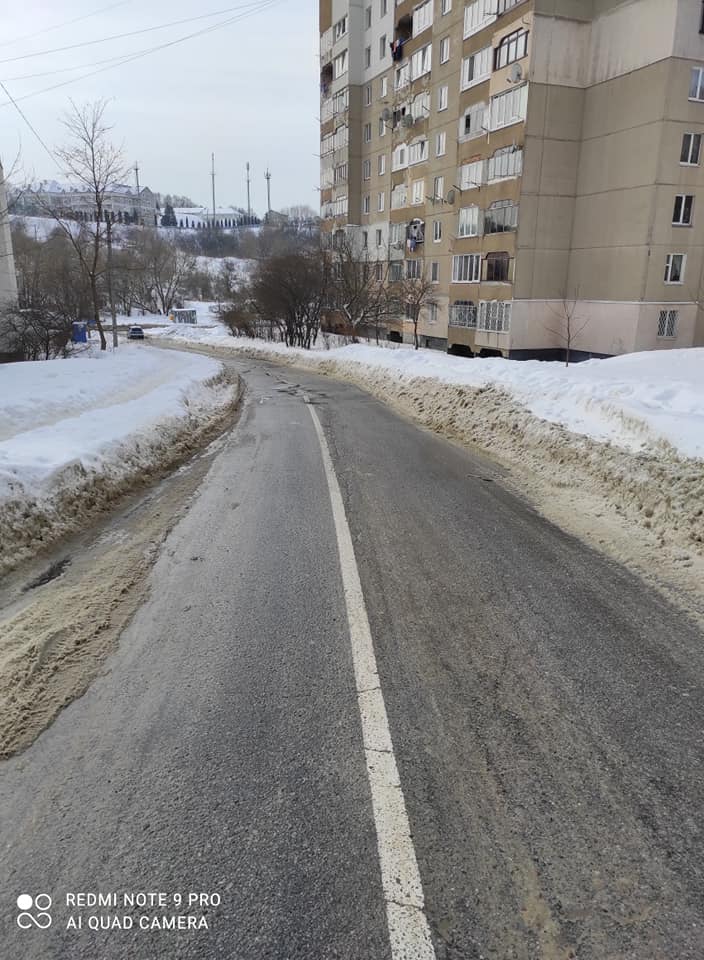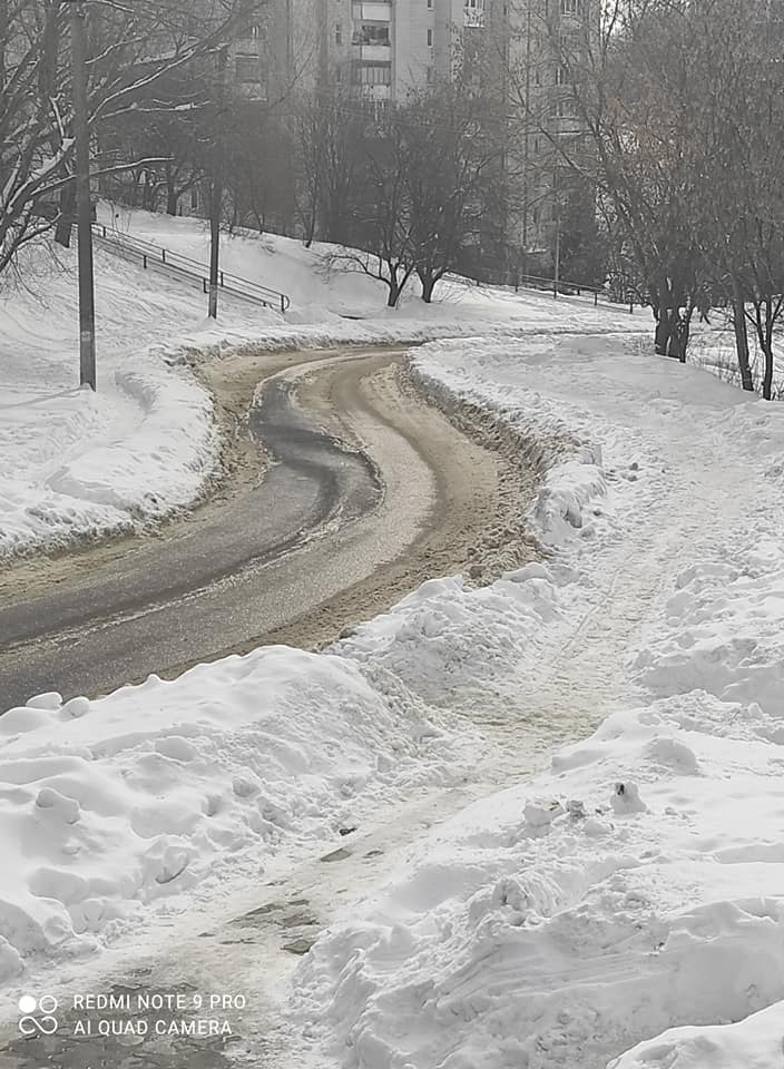 “Дорога прибрана на одну машину, що створює аварійні ситуації. Цією дорогою їздять маршрутки та приватний транспорт, жодних перешкод для прибирання немає”, – йдеться у повідомленні.