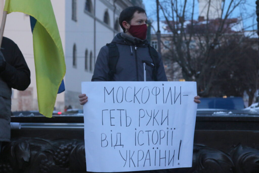 Сьогодні, 29 січня, біля пам’ятника Тарасу Шевченку сотні львів’ян вийшли на акцію протесту проти рішення Окружного адмінсуду Києва, який задовольнив позов екс-заступника глави адміністрації президента часів Януковича Андрія Портнова щодо висвітлення подій Революції Гідності 2013-2014 років та зобов’язав МОН переглянути підручники з історії для загальної середньої освіти, які вийшли в 2018-2019 роках.