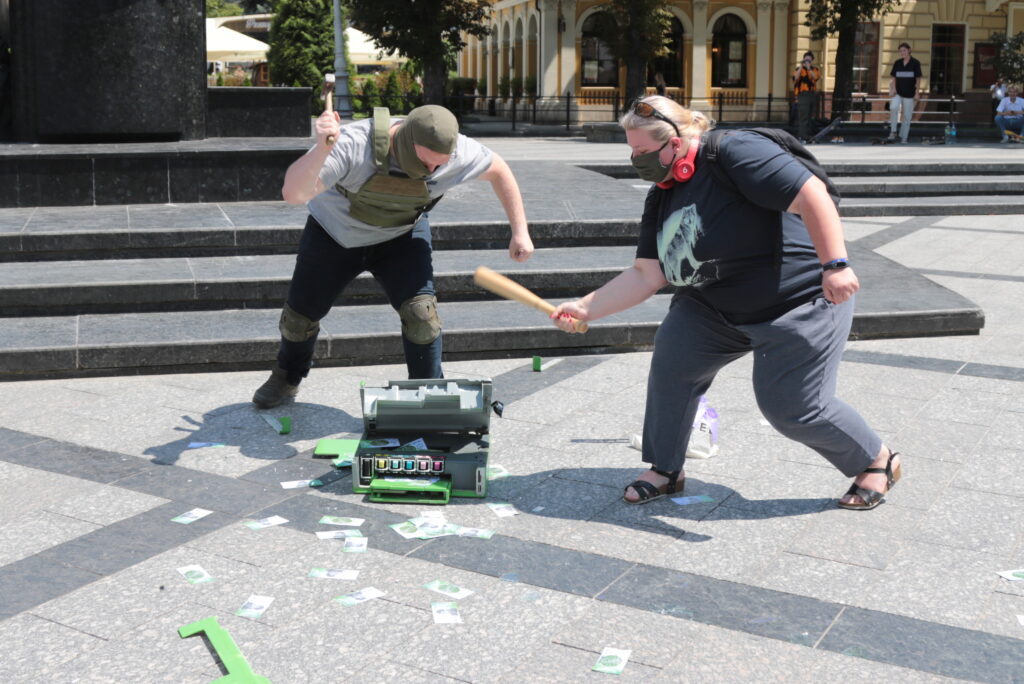 - Акція “Зупини дефолт – вимкни зелений принтер!” у Львові, фото 4studioАкція “Зупини дефолт – вимкни зелений принтер!” у Львові, фото 4studio