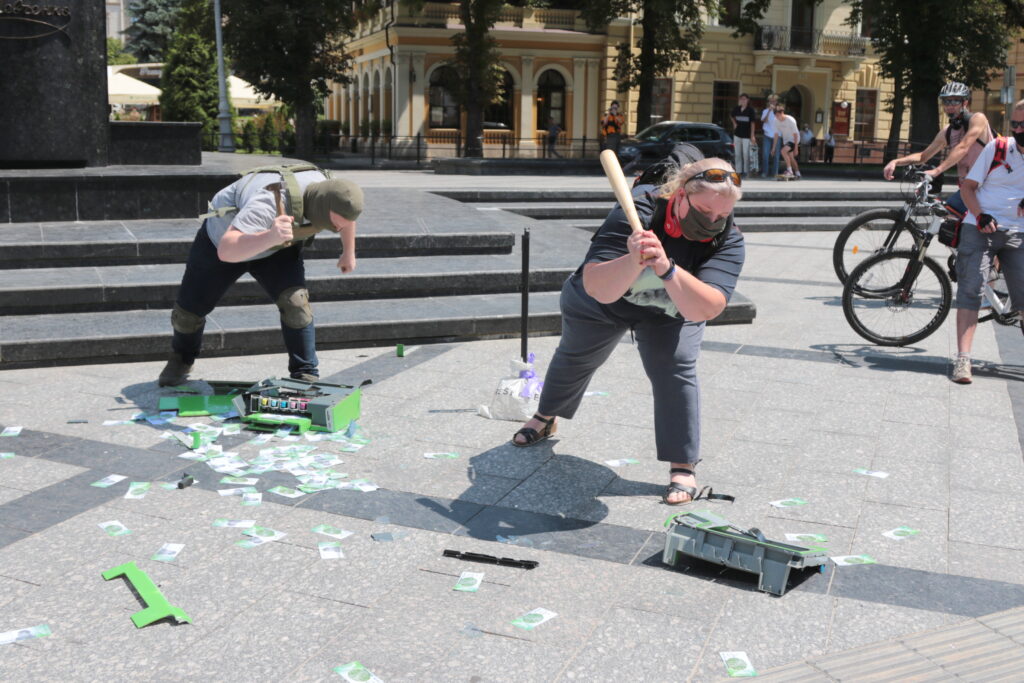 Організатори акції зазначають, що “своїм перформенсом хочемо показати, що ми думаємо про методи цих горе-економістів”.