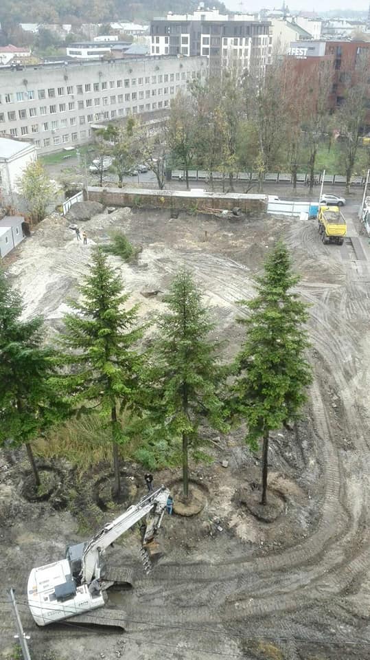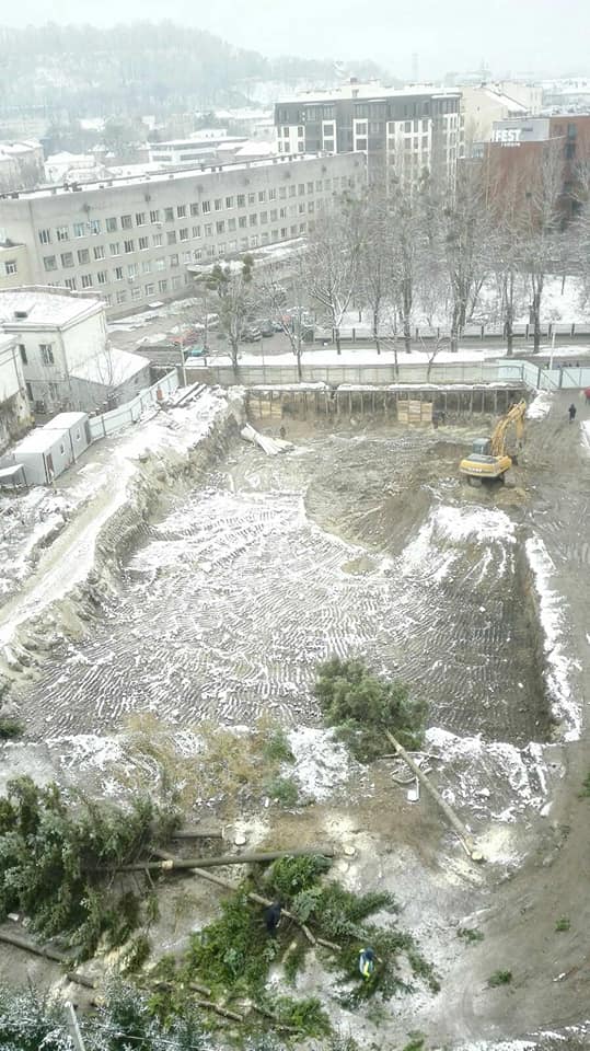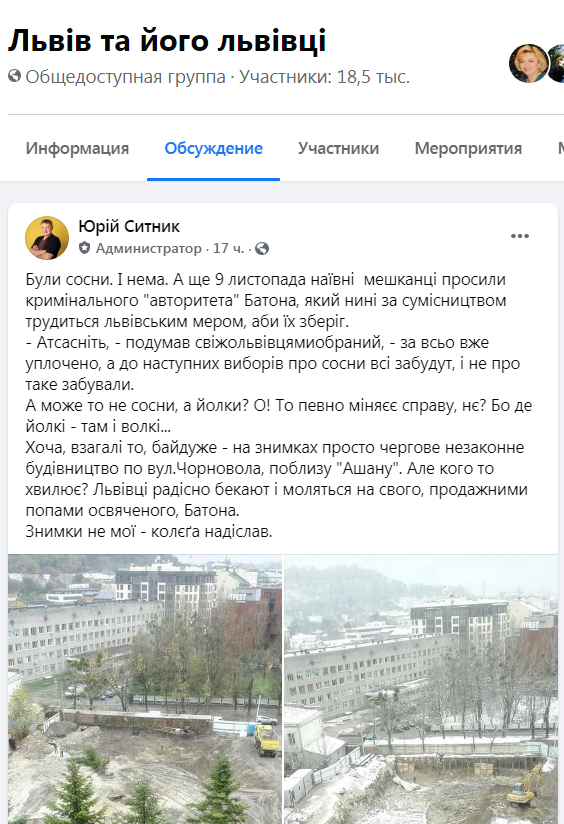 Як пише «Четверта студія», на своїй сторінці у ФБ Юрій Ситник повідомив, що дерева вирубують на місці «чергового незаконного будівництва» поблизу супермаркету «АШАН».