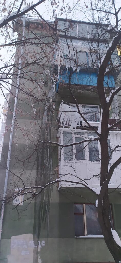 У Львові з балконів на вулиці Городоцька, 211, звисають величезні бурульки.