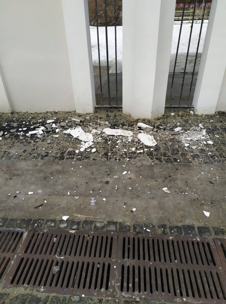 У Львові з центральної арки до Парку Культури відлетів фасад. Фото: Парк культури та відпочинку ім. Б. Хмельницького.