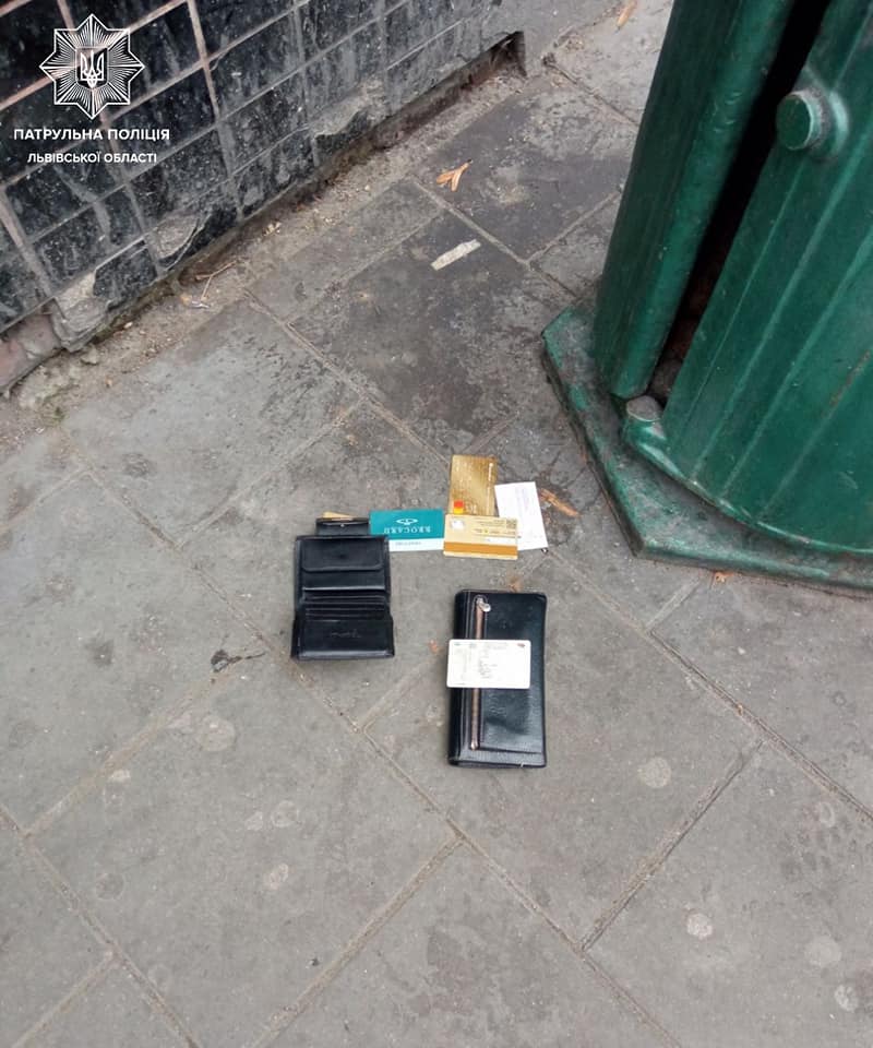 Сьогодні, о пів на першу дня, патрульних 4 батальйону викликала небайдужа львів’янка на вулицю Зернову. Вона побачила як група осіб вибігла з маршрутки і поділивши між собою долари та гривні викинула у смітник два гаманці.