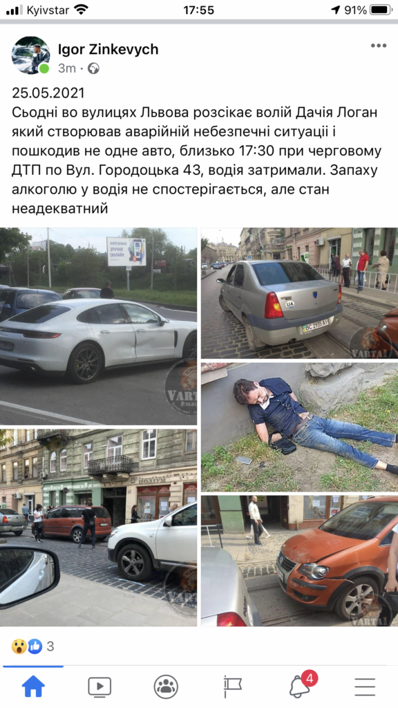 Як йдеться у повідомленні, на вулицях Львова «розсікає водія «Дачія Логан», який створював аварійно небезпечні ситуаціі і пошкодив не одне авто.