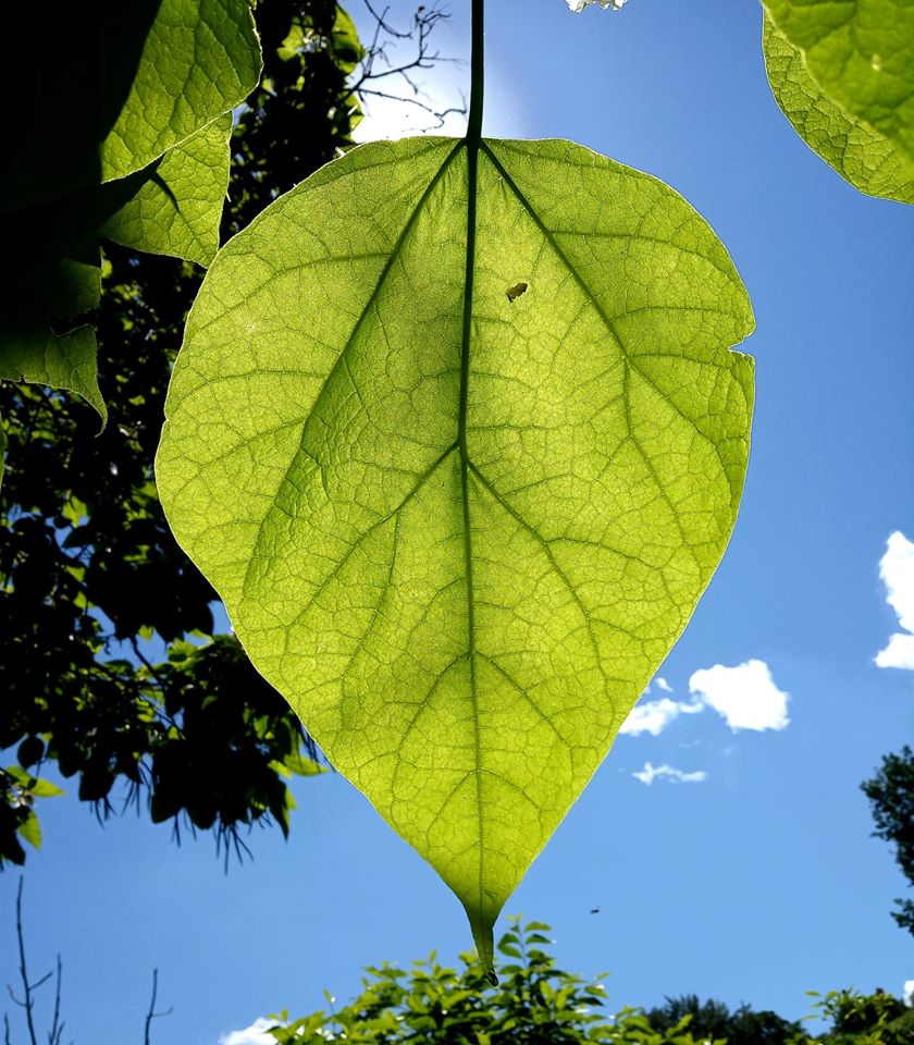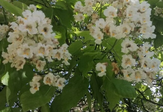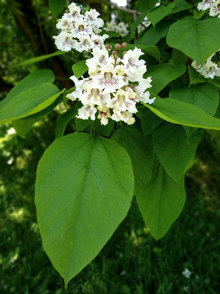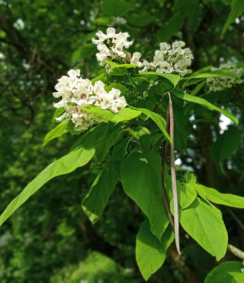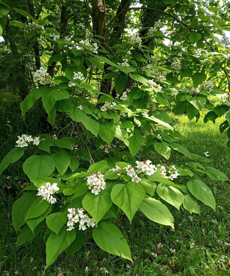 Ця «рослина-мігрантка» з Північної Америки останнім часом набуває все більшої популярності в садах і парках України. Декоративності рослині надають великі серцеподібні листки, масивні гроноподібні суцвіття з білих, зі строкатим візерунком, дзвоникоподібних квіток, а також видовжені бобоподібні плоди, що довгий час не опадають. Останні, немов гірлянди, рясно вкривають дерево, завдяки чому рослина не втрачає привабливості навіть узимку.