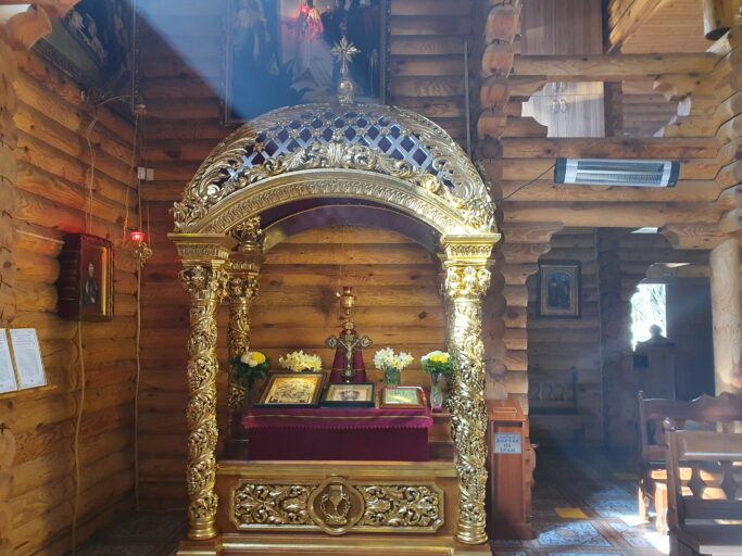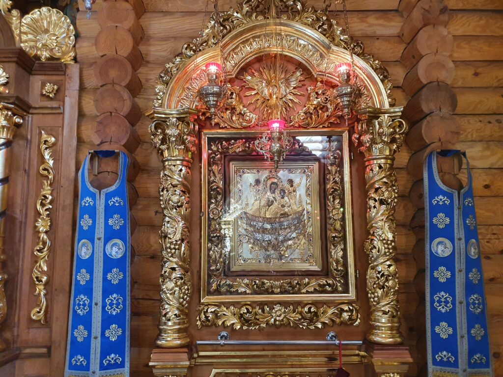 Дерев’яну святиню збудували без жодного цвяха ще 2008 року. Раніше на цьому місці стояла каплиця, яку згодом перемістили у село Стронятин, що на Жовківщині. Храм освятили на честь ікони Пресвятої Богородиці Всецариці, яка є центральною чудотворною святинею. Оригінал ікони написав монах святий Миколай Капруліс з Афону. Сучасний образ Всецариці у Львові списаний з оригіналу, й освячений на поясі Божої Матері та чесній главі Іоана Золотоустого в грецькому монастирі Ватопед на святій горі Афон. Ікона є відомою своєю чудотворною силою, тому віряни приклоняються з проханнями зцілення, особливо з онкологічними захворюваннями. Чимало історій зцілення пов’язують з образом Богоматері. На згадку про здійснені прохання, люди залишають іконі у подарунок особисті речі, серед яких медалики, ланцюжки та персні.