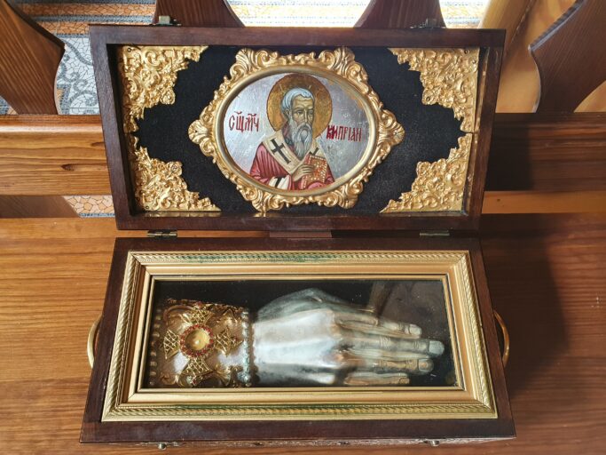 Тут також зібрані частинки мощей таких великих святих, як Миколай Чудотворець, цілитель й великомученик Пантелеймон, Димитрій, Кипріян, Преподобний Меркурій, Костянтин і Єлена Рівноапостольна (мати царя Костянтина).
