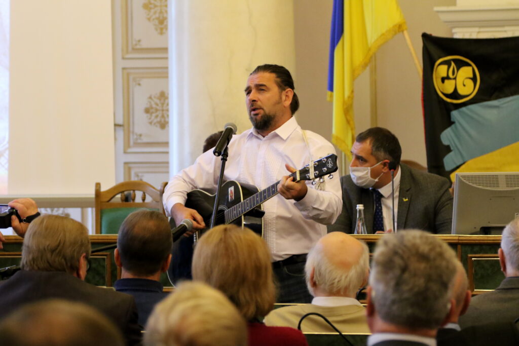 Привітав учасників революції від імені Львівської обласної ради VII скликання очільник облради Олександр Ганущин.