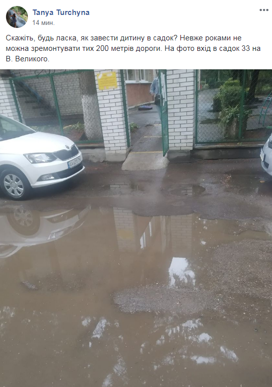 “Скажіть, будь ласка, як завести дитину в садок? Невже роками не можна зремонтувати тих 200 метрів дороги. На фото – вхід в садок № 33 на вулиці Володимира Великого”, – повідомила на “Гарячу лінію міста Львова” у ФБ Tanya Turchyna.