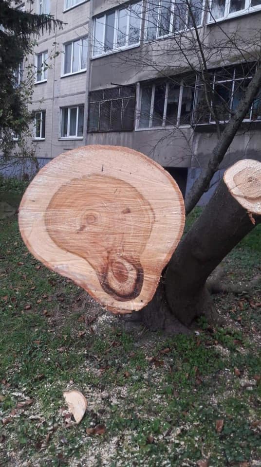 Дерево не трухляве, живе, що видно на фотографіях. У світлі того, що на протязі року відбувається знищення зеленої території навколо даного будинку (літом було зрублено 8 дерев не законно, за що була догана ЛКП), просимо допомогти з´ясувати законність дій ЛКП «Магістральне»”, – йдеться у повідомленні.