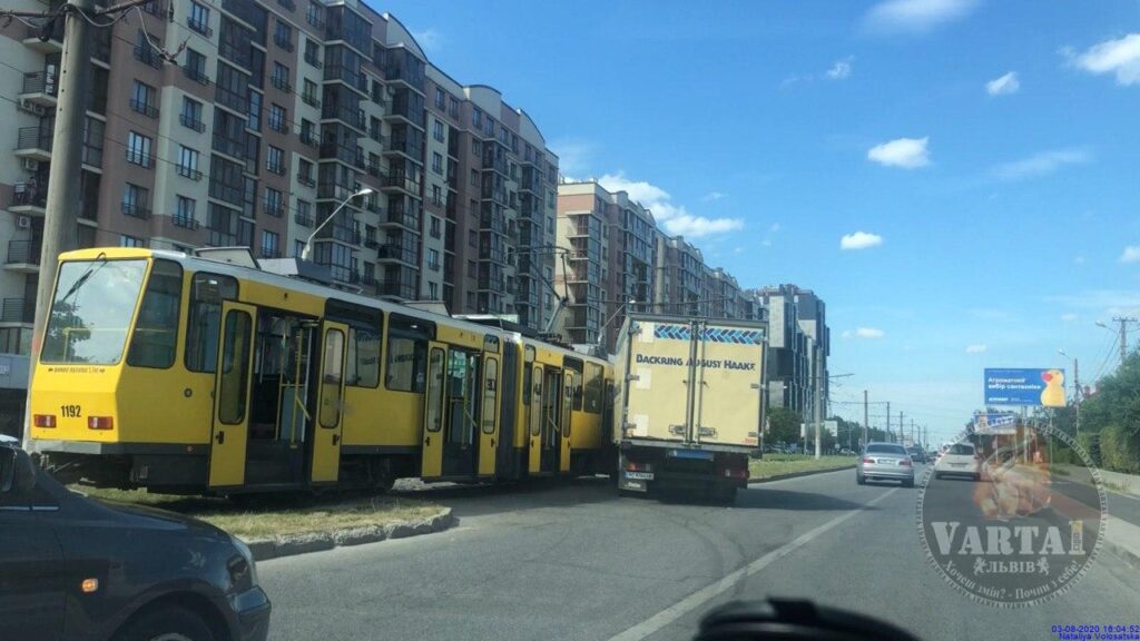 “На вулиці Княгині Ольги стоїть 5-6 трамваїв. Причина – зіткнення вантажівки і трамваєм”, – йдеться у повідомленні.