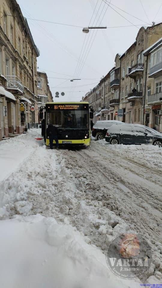 - У Львові зупинився транспорт на вулиці Куліша. Фото: Ігор Зінкевич