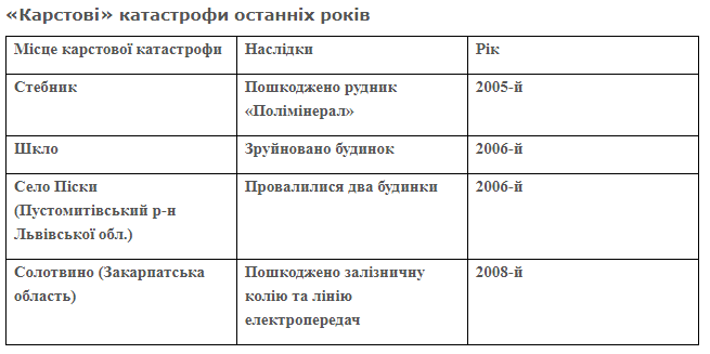 Що ж таке карст і чому він небезпечний? Про це ми запитали у Петра Волошина, викладача кафедри конструктивної географії та картографії Львівського університету ім. І. Франка, який є сьогодні одним із найбільш авторитетних фахівців у цій галузі. «Карст – це процес розчинення водами ґрунтових порід, який призводить до утворення порожнин в їхніх масивах, – розповідає Петро Волошин. – Із часом, коли розмір такої підземної порожнини перевищує критичний, склепіння обвалюється, й на поверхні землі утворюються провалля, карстові “лійки”, “колодязі”, “блюдця”. Саме утворення поверхневих карстових форм становить найбільшу небезпеку для будівництва інженерних споруд. Бо якщо будівля не має відповідного захисту, а під фундаментом виникає провалля завглибшки до 20-40 метрів, то врятувати її практично неможливо. Але найбільша небезпека в тім, що такі карстові утворення виникають практично миттєво. Якщо зсувні процеси розвиваються протягом кількох годин, то карстові порожнини можуть з’явитися за кілька хвилин».