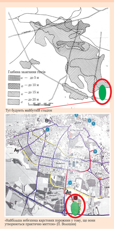 Міська влада вперто мовчить про карстову небезпеку. У департаменті Євро-2012 нам повідомили, що наразі досліджень ґрунту на місці будівництва стадіону не проводять – начебто тому, що вони вже були виконані влітку 2008 року. Хто їх проводив? Які результати? Про це не знаємо не лише ми, але й фахівці-геологи, хоча їх це стосується безпосередньо. Чому ж не оприлюднити результатів таких досліджень, якщо вони справді вже проведені? Тут може бути лише дві версії: їхні результати виявилися не надто втішними для стадіону або ж це звичайнісінька «липа». А ось те, що міська влада намагається приховати проведення реальних геологічних досліджень у грудні, є цілком зрозумілим: про початок будівництва оголосили ще 11 листопада 2008 року, тому до результатів досліджень неминуче пасуватиму поняття «заднім числом».